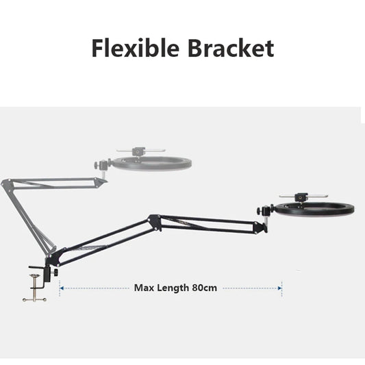 Overhead Tripod with Ring Light for Mobile Cell Phone Desktop Video Shooting Table Horizontal Smartphone Tripe for Cook Filming